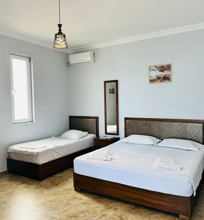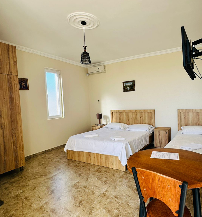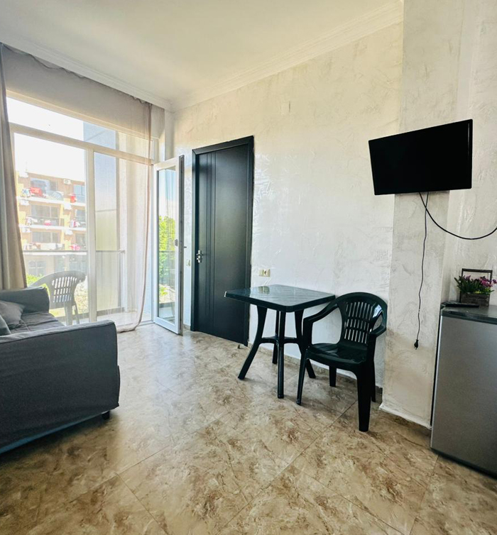აპარტამენტი გათვლილია 4 პერსონაზე. აპარტამენტი აღჭურვილია სრული კომფორტული სერვისით. უკაბელო ტელევიზიით.ინტერნეტით. მაცივრით. კონდიციონერით და საშხაპით.