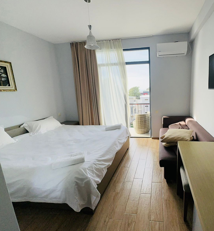 აპარტამენტი გათვლილია 4 პერსონაზე. აპარტამენტი აღჭურვილია სრული კომფორტული სერვისით. უკაბელო ტელევიზიით.ინტერნეტით. მაცივრით. კონდიციონერით და საშხაპით.