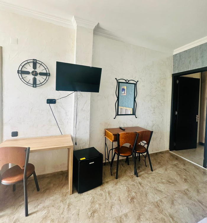 2 ოთახიანი ლუქს აპარტამენტი ხედით ზღვაზე. აპარტამენტი აღჭურვილია სრული კომფორტული სერვისით. უკაბელო ტელევიზიით.ინტერნეტით. მაცივრით. კონდიციონერით და საშხაპით.