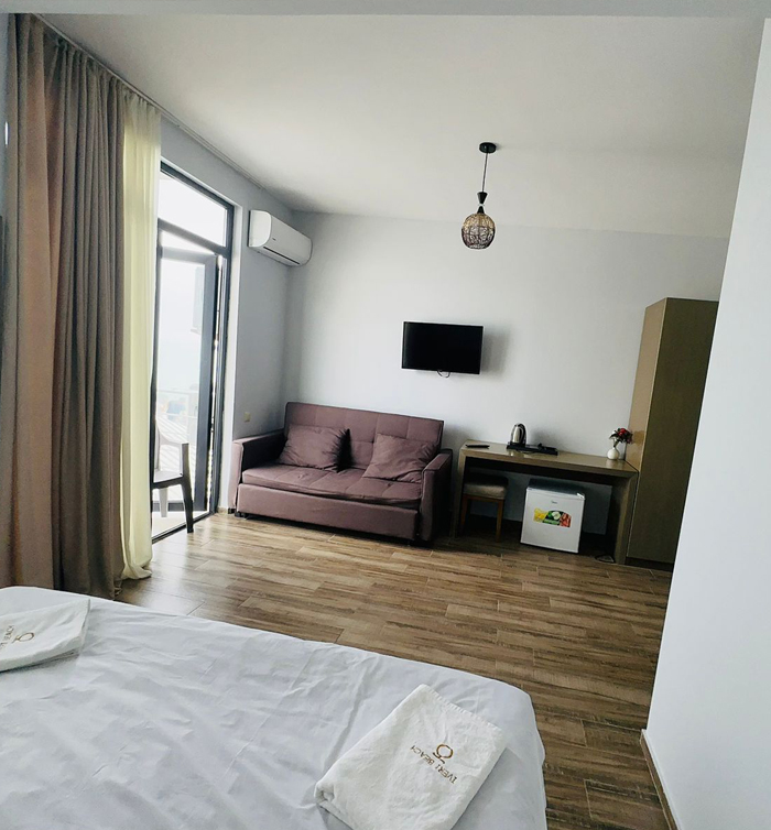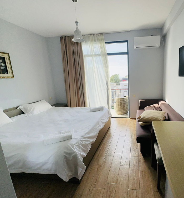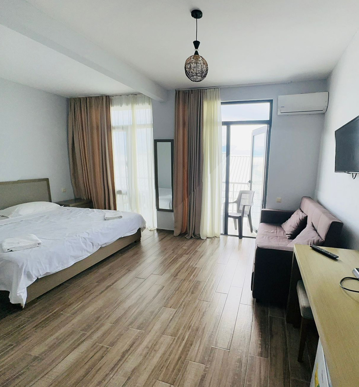 2+1 ადგილიანი აპარტამენტი. აპარტამენტი აღჭურვილია სრული კომფორტული სერვისით. უკაბელო ტელევიზიით.ინტერნეტით. მაცივრით. კონდიციონერით და საშხაპით.